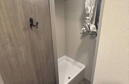 Queen size bed, Booth style dinette converts to a 2nd bed, Fridge, 43” TV, Hot Water, Kitchenette, WiFi, Heat & AC, Private patio, Hot tub.