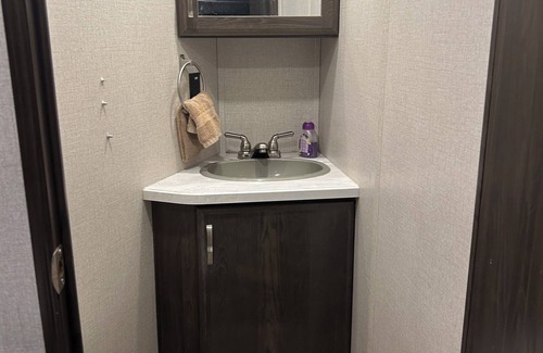 The RV is a 42’ Toy Hauler Fifth Wheel with a side patio. Spacious indoor living space and can comfortably sleep up to 6 guests with two queen size beds, a bunk and the option for a third queen size bed in the second bedroom.
