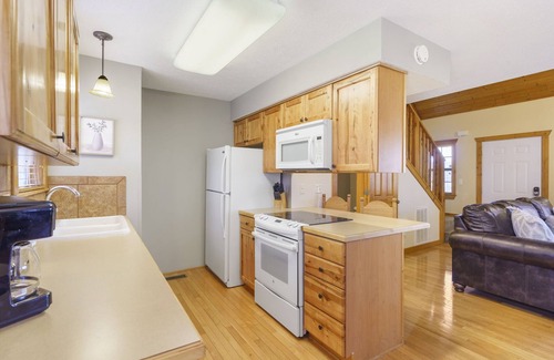 This gorgeously appointed townhouse features a spacious living area with a gas fireplace-- curl up on the couch to watch your favorite show with your loved ones. Pour the coffee and gather around the dining room table for a lazy breakfast. Waltz upstairs into the king ensuite and take a luxurious soak in the jacuzzi bathtub. Want to soak up the beauty of the Ozarks? Your screened-in porch sets the perfect mood for private outdoor relaxation. Here, you'll find everything you need for an enjoyable and comfortable stay, with features such as free wifi, luxurious bedding, and a fully-equipped kitchen, perfect for date night-in.