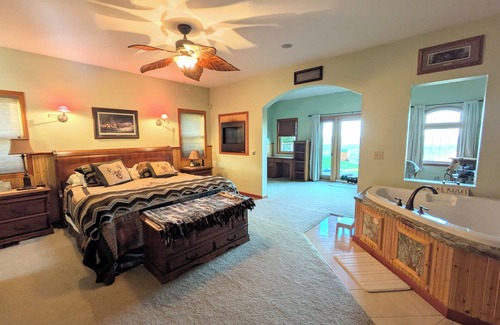 A perfect couples getaway on Lake Osakis complete with King Suite, which includes a gas fireplace, jetted tub and sweeping views. Also enjoy the sauna, wood-burning fireplace in the living room, outdoor fire pit, and gourmet kitchen. Cozy up during fall, winter or spring with someone you love!