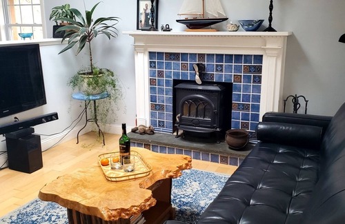 Enjoy a romantic getaway at this cozy home. On chilly nights or weather-challenged days, fire up the wood stove and relax with a glass of wine. Within walking distance to a private beach and Rocky Neck State Park. The backyard abuts a nature preserve with walking paths. 3 miles from Niantic Main Street, boardwalk, restaurants, breweries, marinas, and museums.