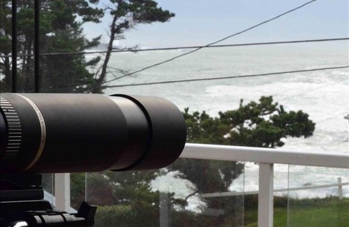 A beautiful Craftsman Ocean View home in a seaport village with hardwood floors, three large decks, river rock fireplace , hot tub for six, outdoor furniture for dining or relaxing, near ocean access, fully equipped kitchen with convection oven, large refrigerator and freezer, bedrooms have European style comforters, near places to hike and bike; great places to eat and shop with outlet malls nearby yet away from the hustle and bustle. You can always see whales in the bay during the whale watching season, and often can see them right from our decks. From the kitchen and living room windows you can watch the amazing spouting horn that sometimes goes as high as 40-50 feet in the winter time.