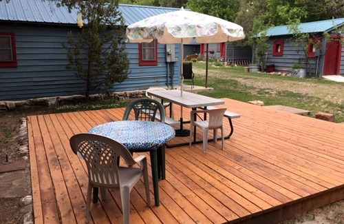 This is a two room rustic cabin with vaulted ceilings, ceiling fans, and pine flooring. The kitchen includes a stove, refrigerator, microwave, coffee maker, and toaster. Dish/Cook/Silverware included. Sleeps up to 4 people in two full beds. We supply the pillows and sheets, you supply the blankets/sleeping bags and bath towels. Outdoor dining and sitting areas include a cozy front porch and a large side deck with a gas BBQ grill. Easy access to the river and to fishing. A NM fishing license is required. Complimentary WiFi.