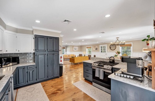 This fully equipped kitchen, complete with modern appliances and elegant countertops, is a chef’s dream. Coffee enthusiasts will love the keurig for that perfect morning brew. Whether preparing a quick breakfast or a gourmet dinner, all essentials are on hand. Gather around the dining table to enjoy a warm, shared meal experience.