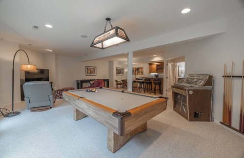 • Fully finished lower level – features 2 additional bedrooms, wet bar, card table, pool table, shuffle board, juke box, living room, TV, full bathroom, and walkout access to the lower level patio