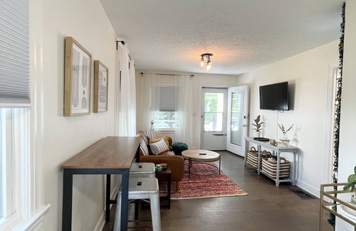 Enjoy a stylish experience at this centrally-located property. This house is in walking distance and less than a 5 min drive to Churchill downs (1 mile away). Also just a short drive away to the airport, University of Louisville’s campus, & the expo center, all taking 5/10 mins depending on traffic/events. Each of the bedrooms have a queen size bed and closet. Open family room and kitchen layout. House is fully stocked with cooking supplies, a coffee station, and towels & linens. Can sleep up to 5 guest.
