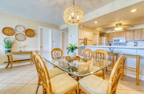 This condo can conveniently accommodate a party of 7. The master bedroom has a king-sized bed that comfortably sleeps 2, as well as a private, full bathroom attached to it. The guest bedroom has 1 queen size bed and 1 twin bed along with an attached full bathroom that is also accessible from the living room area. The living room is equipped with plenty of comfortable seating for lounging and relaxing throughout the day during your breaks from the beach, as well as a pull-out sleeper sofa bed that can comfortably sleep 2. The total sleeping accommodations for this condo is 7 guests.