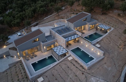 DAELIA VILLAS II of 3 Luxury Villas, private pool, in an enclosed olive grove is located in Plomari. DAELIA VILLAS II of 3 Luxury Villas, private pool, in an enclosed olive grove provides accommodation, featuring TV, Private Pool, Ocean View, among other amenities. This Villa features TV, Private Pool, Ocean View, to make your stay a comfortable one.