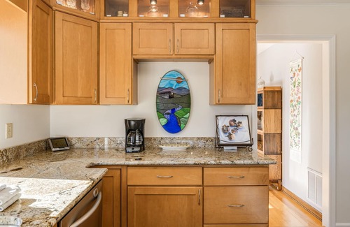 Families love Daisy Farm, and with five bedrooms, four full baths, and a kitchenette on the lower level, the property is perfect for group retreats. Gather to discuss the day's plans over breakfast in the spacious sunroom. At the end of the day, relax by the fireplace in the living room while watching the sunset mountain view through a wall of picture windows. Everyone will be grateful for downtime in the lower level den, where there are lots of comfy places to sit and watch a movie or play board games. For a good night's rest, the main level bedroom suite includes a king bed and a private bath with a jetted tub. Daisy Farm provides peace of mind with a coded gate at the entrance and a sturdy, reliable fence keeping the animals at a distance from the house. A flat, grassy lawn surrounds the home, perfect for ballgames. On the property, you can walk to the barn and riding rink, and find enchantment on maintained trails through the woods (Map Provided In-Home). This charming ranch home, located less than 10 minutes from shopping and dining, is an easy choice for an intentional getaway that encourages peaceful, enriching moments. Get a sample of idyllic country life at Daisy Farm! This Asheville vacation rental is located in Candler and is approximately 18 minutes from downtown Asheville.