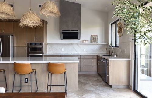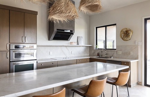 Enjoy a peaceful experience at this house on an acre with desert and mountain views - backing up to a wash in upscale Dark Sky city Fountain Hills, 5 minute drive to Scottsdale and downtown Fountain Hills, 25 minute drive to Old Town Scottsdale. Large lot with private pool (NOT heated), furnished covered patio, and desert landscaping. Large kitchen with vaulted ceilings opening up to a patio with an outdoor kitchen. Finishes include tile floor throughout, custom cabinetry, quartzite countertops, stainless steel appliances, and authentic lime plaster and lime washed walls. Smart lighting, high speed internet, and Tesla EV charger available for the tech savvy. Equestrian/UTV/ATV trails galore nearby. Experienced host with highly rated properties.