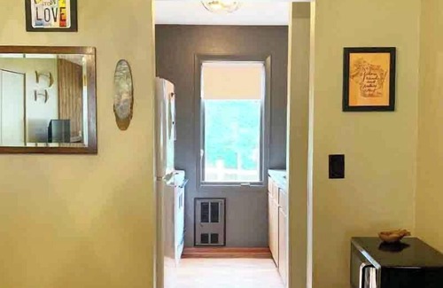 Recently renovated. This condo has a living & dining area with a fully equipped kitchen, WIFI and Smart TV/DVD. 2 bedrooms, one with a queen bed and another with 2 twin beds. Just steps out the patio door is the outdoor swimming pool; a short walk out the front door adjacent trail takes you to the beautiful Wisconsin River. There is a charcoal grill available near the pool area on a first-come first-served basis. Outdoor pickle ball, tennis and basketball court on-site.