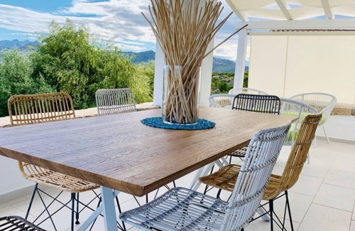 This stunning villa captures the essence of Sardinia, seamlessly blending with the natural beauty of its surroundings. Overlooking the crystal-clear sea and nestled among lush Mediterranean greenery, olive trees, and striking granite formations, this home offers an exclusive retreat for up to 10 guests. The villa's refined design, expansive garden, and private heated pool create the perfect setting for relaxation and indulgence.