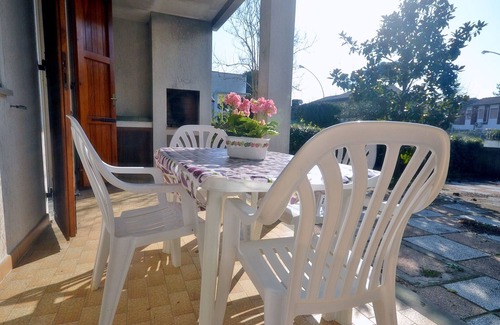 Terraced house on the ground floor with private garden and patio furnished and equipped with barbecue at 400 meters. from the sea and the center, quiet area.