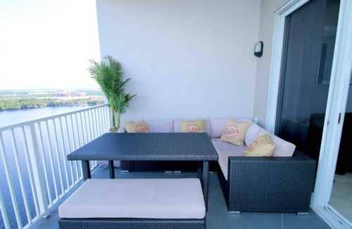 BRAND NEW completely renovated 2 bedroom 2 bathroom 21st floor PENTHOUSE. Direct & Private Disney Fireworks Views from within comfort of Stunning Condo. Beautiful Resort with pool, hot tubs, gym, walking dock etc. Even has a STARBUCKS right downstairs!