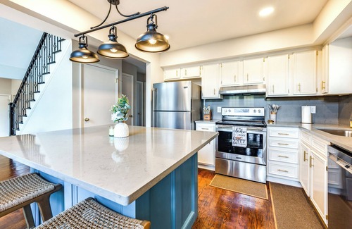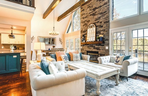Laid-back lake living awaits at this beautiful Lexington vacation rental. The 5-bedroom, 3.5-bath home is perfect for an all-ages getaway, with amenities like a game room, a furnished deck and patio, and Smart TVs. Bringing your boat? Great! You’ll have a private dock on High Rock Lake for easy access to waterfront fun. In the evening, grab a drink and admire the lake views while the kids play in the yard.