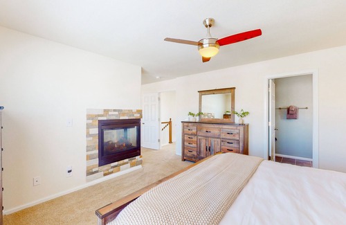 When you return, cool off in the central AC if it’s hot or cozy up with cocoa in front of the gas fireplace if it’s cold while the day’s clothes get a quick refresh in the washer/dryer. Entertainment options include free cable, two streaming-capable TVs, an Xbox, a DVD player and movie library, board games, puzzles, and cards. Those traveling with small children will be especially pleased, with kid’s games, a crib, Pack ’N Play, changing table, and toys all on hand. And those with any lingering remote work will appreciate the free high-speed WiFi and dedicated desk area, complete with an available monitor. Five serene sanctuaries await at the end of the night, with lucky guests of the primary suite enjoying a private fireplace and en suite bath. Whether you’re in town to relax or explore, you’ve found the perfect hideaway with Fountain Dobbs Retreat!