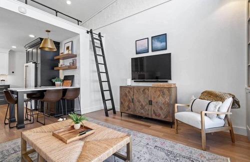 Downtown Luxe Loft: Historic charm meets modern luxury—stylish, flexible, and steps from the city’s best. In the Walnut Street Historic District — walk to dining, coffee, and boutiques
