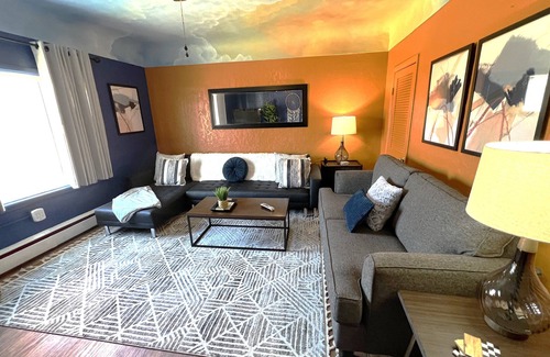 Stay in this beautifully decorated and furnished apartment in the perfect location, across the street from a great local park and in walking distance to vibrant downtown Sandusky with all the best restaurants, bars, shopping, ferries to Cedar Point, Kelley's Island and Put-in-Bay, water fun and only a 3-mile drive to Cedar Point.