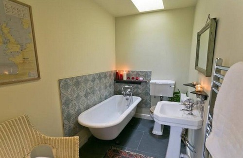 Enter the sitting room at The Duck House through French doors - airy, lofty and light, with a sweep of oak floor, warm underfoot, a wood-burning stove, and a plump sofa to sink into. With everything on one level, you can roll into your snug, light-filled bedroom topped with a lovely bright duvet. Walk your socks off and return to a hot bath in the distinctively smart bathroom.