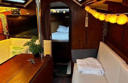 Duerme en un velero is located in Barcelona, just 1.2 miles from Picasso Museum and 2.1 miles from Placa Reial. The property is around 2.4 miles from Palau de la Musica Catalana, 2.4 miles from Tivoli Theatre, and 2.5 miles from Boqueria Market. Private parking can be arranged at an extra charge. The air-conditioned boat is composed of 1 separate bedroom, a living room, a fully equipped kitchenette, and 1 bathroom. Towels and bed linen are featured in the boat. The property offers sea views. Popular points of interest near the boat include Nova Icaria Beach, Port Olimpic, and Santa Maria del Mar. Barcelona-El Prat Airport is 8.7 miles away.