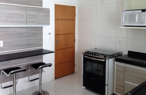 - Kitchen with planned furniture, refrigerator Frost Free 340L, stove 5 burners, microwave, table and stools for fast snack and utensils for 12 people;