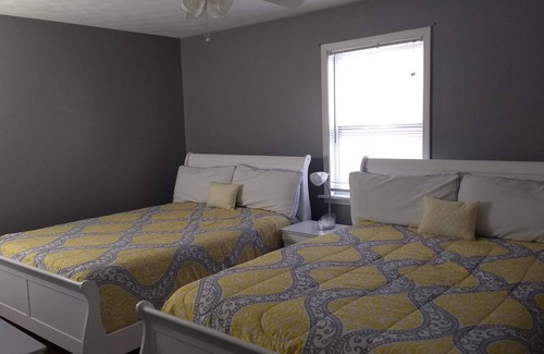 32 miles to the fields. Plenty of room to spread out. 4 full bathrooms. Easy drive to the fields and tournaments.