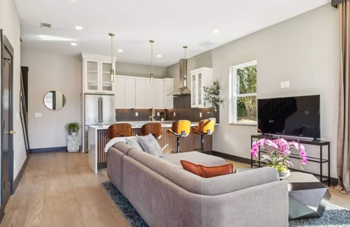 Welcome to Montage! This stunning 4-bedroom, 4.5 Bath luxury home is in Nashville! All 4 bedrooms have private bathrooms featuring 7 beds (1 King, 1 Twin-over-Twin Bunk, 4 Queens), comfortably sleeps 12! Enjoy three stories of modern design, a rooftop deck with city views, and a second-floor patio for relaxing. Perfect for groups or families, this spacious home is just minutes from downtown, offering both comfort and style for your Nashville getaway. Book now for a memorable stay!