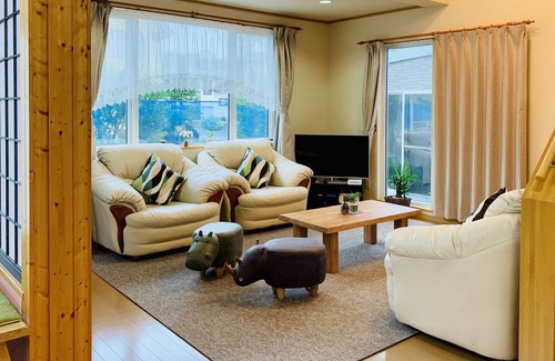 The house is located 20 min drive from Noboribetsu hot spring town, maximum 16 guests can be accommodated independently. Self check-in with key box in the entrance, 2-3 car parking are available.(only 2 car parking for seven seat car.