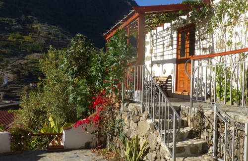 "El Tangaro" is located at Hermigua, on Gomera's green and leafy northeastern coast streching from the Garajonay national park to the beach,. along a luscious green valley, full of banana groves, palm, papaya and mango trees,A lovely and cosy place where you can enjoy all the confort, and the calm you can expect for perfect holidays. Surrounded by nice terraces, a subtropical garden, it offers fantastics views over the mountains, the village and of course towards the ocean.