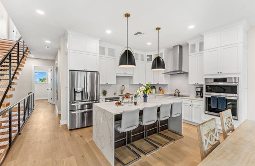 Fully equipped modern kitchen with quartz countertops and premium appliances