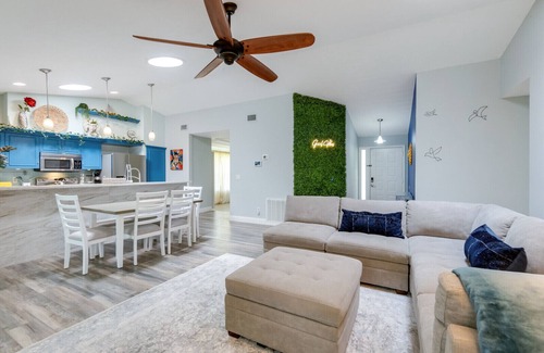 Welcome the Blue Gardens Home, a peaceful escape surrounded by swaying palms and Florida sun. Relax by the clear blue pool, sway in the hammock, or spend the evening by the firepit under the stars.