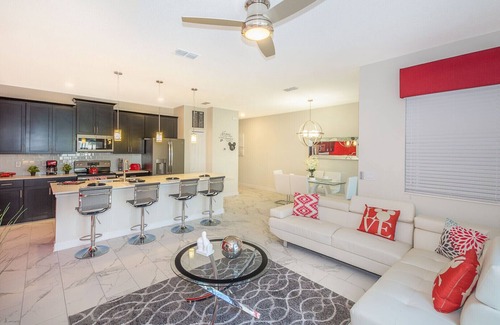 Live your own epic story!LUXURY Townhouse in Storey Lake - 4 bedrooms, 3 bathrooms, the house is fully equipped with kitchen, private pool, barbecue grill. With resort services included: mini-golf course, sports courts and water park. The house is close to grocery stores, supermarkets, restaurants and many shopping centers.Disney (6 min) Sea World (15 min) Universal (20 min)Convention Center (20 min) Legoland (20 min) Airport (30 min)The SpaceThis elegant 4-bedroom, 3-bathroom vacation home can comfortably accommodate 10 guests in 1,914 square feet of luxurious living space, offering an ideal size and layout for large families and groups traveling together. From the moment you arrive, this house makes a statement! Lush tropical landscaping surrounds the facilities, creating a wonderful oasis atmosphere. Inside, the house comes with everything you need to feel as relaxed as possible during your stay, from air conditioning and in-unit washers to wireless internet access and a fully equipped kitchen, with a breakfast table with all necessary appliances. Enjoy your culinary creations around the formal dining table with seating for 8 with elegance. This modern-inspired house will make you feel like you've been transported to another land where time disappears and relaxation is king! Choose this house for your next vacation in sunny central Florida.Everyone in your group will love enjoying the Florida sun by the house's pool. Relax with a good book and a cold drink on the huge private covered terrace, where you can rest on one of the loungers. You can have a barbecue ($$), use the private heated pool ($$) and enjoy the modern touch it offers. You will love our house for the neighborhood, comfortable beds, kitchen and easy access to the parks.HOUSE SERVICES:• 1,914 square feet• Central air conditioning• Free parking• Private pool• Covered terrace• Patio furniture• Free cable TV and WiFi• Granite countertops• Fully equipped kitchen• Contemporary furniture and decor• Towels and bed linens included• Pool heating ($30 per day) Optional• Barbecue rental ($120 for entire stay) Optional• Crib and high chair (free upon request)• Private door code for each guest staySTOREY LAKE RESORT SERVICES• Extraordinary 6,000 square foot clubhouse• Gym• Lounge• Jacuzzi• Cabana• Lazy river• Water slide• Children's playground• Tiki pool bar• On-site convenience store• Enormous resort-style pool• 24-hour security• Volleyball court