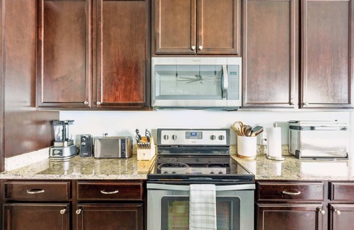 - Chef-friendly kitchen: Full-size appliances, granite counters, and a coffee bar (Nespresso) with starter pods
