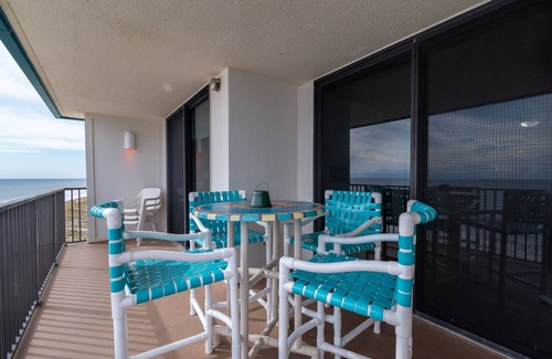 508 is located on the 5th floor. It is Gulf front. The view is awesome . Sit on your private balcony and watch the dolphins swim! All tile floors throughout. It is equipped with washer and dryer. Lovely condo on the 5th floor with a birds eye view.