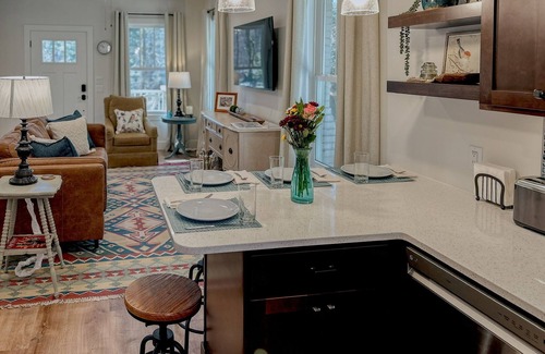 Enjoy a small town experience at this centrally-located cottage in the mountains of Western North Carolina. Located across from the Ecusta Trail greenway. Completely renovated, this stylish bungalow features an eclectic interior with vintage touches, as well as all the modern conveniences, including full kitchen, washer/dryer and fast wifi. Venture out for a walk to restaurants and shopping in Historic Downtown Hendersonville. Simply cross the avenue to enjoy a delicious beverage at a quaint coffee shop and a local park that includes a playground.