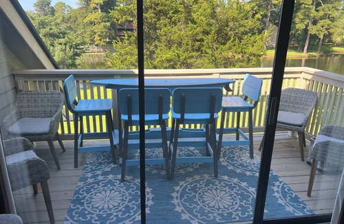 Unit 5E offers a beautiful living / dining area and a fully stocked kitchen with granite countertops. A large private balcony overlooks the lake for outside entertaining, lounging with a view of the Atlantic Ocean just through the trees, or peaceful evening of serenity. The unit features free parking and free high-speed Wifi.