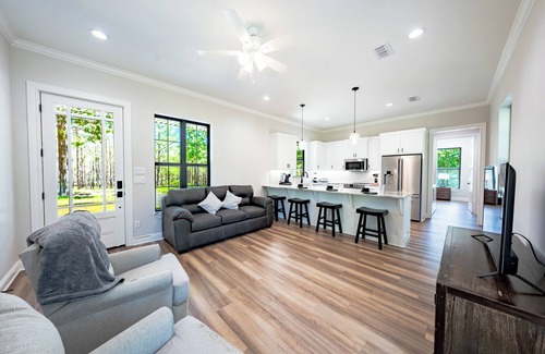 We are an event center that has two homes located on the property. This home is nestled up on the hill that creates privacy for your stay. The property is 75 acres of serene landscaping and nature. We are located minutes from downtown Athens with a variety of dining options and shopping.