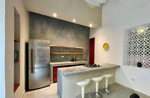 NEW Disfruta de este apartamento con estilo tropical, y piscina privada, a pasos del mar y cerca del Parque Bolívar,la Catedral y la zona de restaurantes. En el centro histórico, con su diseño cálido y arquitectura impresionante.Este espacio de dos habitaciones con aire acondicionado, piscina privada,cocina equipada, NO wifi y un salón acogedor. Perfecto para relajarte y explorar la bahía más linda de América. Vive la esencia del Caribe colombiano en el corazón de Santa Marta. ¡Reserva ahora!
