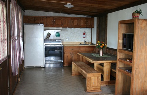 EACH unit has its own fully stocked kitchen, outdoor gas grill, bedrooms, full bathroom with stand-up shower and living/dining areas. There are a total of 9 bedrooms and 4 bathrooms. The cabin's enclosed porch is perfect for relaxing/dining together with plenty of seating and an amazing lake view. There is even a dry bar for the adults.