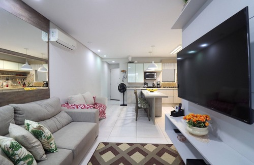 Excellent apartment, consisting of 03 bedrooms, one suite with a double bed, the second bedroom with a double bed and space reserved for a home office and the third bedroom with a double bed and a single bed, all rooms with air conditioning, guest bathroom, closed balcony with charcoal grill and sink, full kitchen. It has a parking space. Impeccable apartment with planned furniture.