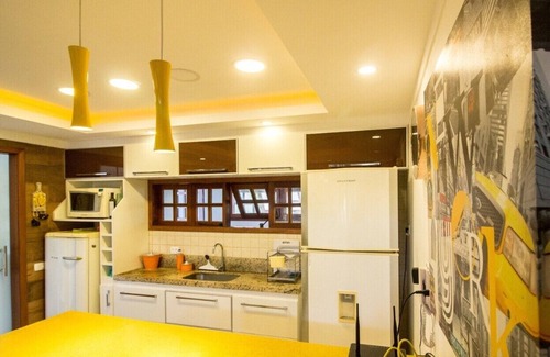 House with 4 suites all with air conditioning and ceiling fan, all with TV, satellite and SKY points having to take the unit, 3 suites with double bed box one being King, and a suite with two single box beds being one has bed underneath, guest toilet, retractable sofa, ice maker, freezer, built-in oven, cooktop stove, refrigerator, washing machine, wine cellar, soft water filter not requiring purchase of water gallon, closet throughout home, all appliances, fast internet with wifi, air conditioning in the room with air curtain on the door, all house with musket screen on all doors and windows, barbecue with all accessories, garage for 3 medium or 2 large cars with Portao electronic, Apple TV, complete bedding, bath and table, full kitchen appliances, newly painted inside and out newly perfect home for you to enjoy a weekend, vacation, Christmas, New Year's Eve and Carna Unforgettable val.