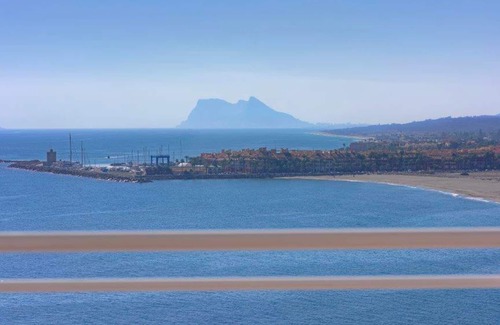 The apartment offers breathtaking views of the Mediterranean. Located on the 13th floor, it overlooks the marina of Sotogrande and Gibraltar in the background. You can sit on the balcony and gaze at the vast expanse of ocean. Africa is in the distance. The ground floor is a few steps from the water. The apartment is in a quiet area next to a shallow bay. A few meters away you will find shops, bars, restaurants and supermarkets in Torreguadiaro. A longer walk will take you to the center of the Sotogrande Marshes with its own bars and restaurants, as well as another sheltered sandy beach. The establishment also has a 2 th apartment with 2 beds, which can accommodate a total of 10 a group of 10 people.