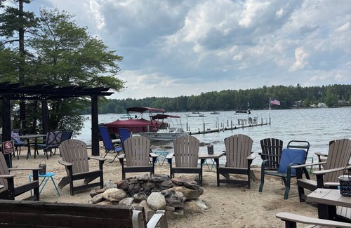 This brilliant house in Moultonborough is waterfront on incredible Lake Winnipesaukee and offers 3 cozy bedrooms with a mix of sleeping arrangements, including a king bed, queen bed, futon, and twin bed. With 2 bathrooms & an outdoor shower featuring refreshing showers, guests can relax and unwind after a day of exploring. The living room provides additional space with 2 comfy futons for extra guests. This great property offers a dock space for you to put your boat or jet ski on during your stay! The boat launch is right across the street, gas dock is right around the corner. The house offers a gas grill, Blackstone griddle, and plenty of seating on the outdoor deck. There is a large private beach with ample seating for your enjoyment. There are paddle boats, kayaks, & canoes for you to take a ride on the lake! We offer 2 fire pits for nighttime wind down. A nice retreat for your vacation, this property is a great place to call homebase while you're away. We hope you enjoy your stay. Property is shared with fun & happy owners & 3 other cottages. Great for a large family gathering!