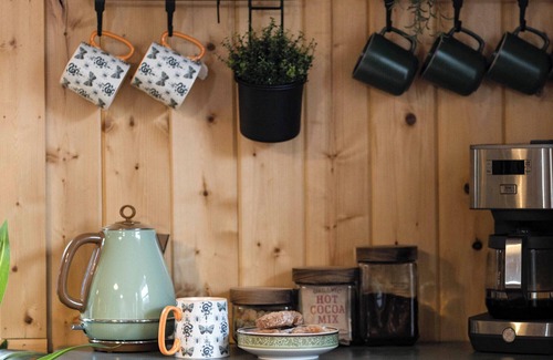 Unwind by the warmth of the classic woodstove with a steaming cup from the well-stocked beverage station (coffee, tea, cocoa). Stream your favorite shows or get cozy with games and books.