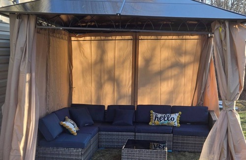 Outdoor Dining: Fire up the BBQ (propane included!) and enjoy dinner sitting at the 6 person table with umbrella, perfect for sunny days and evening meals.