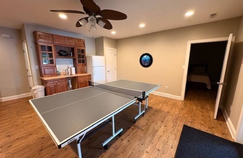 - Lower level includes a grandparents suite with queen bed and 2 twin beds. Lower level also has a pool table, ping-pong table, and entertainment area with large comfortable couch.