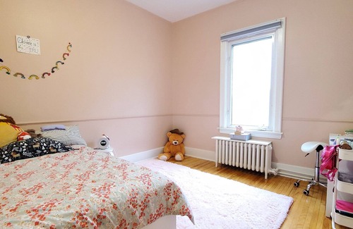Our home hosts a formal sitting room for guests and an informal family room where the television is located. We have three bedrooms; the master contains a King Bed with a custom latex mattress, with a side for a larger and smaller sleeper. The two kid's bedrooms both features two beds; one is a bunk bed and the other has a pull out beneath that reveals a second mattress. The master bathroom features a tall soaking tub and a stand up shower and there is a second half bathroom at the rear of the house. The dining room can seat up to nine at the table if necessary! The Kitchen features all necessary pots, pans, and dishes as well as a coffee grinder, double oven, and filtered water from the fridge. Laundry is available with both washer and dryer. We have a single parking spot in a laneway beside the house and parking available on the street front if necessary. Our home is on the second floor so you will need to climb a set of stairs to access it; we rent out the suite below to a respectful, quiet tenant. Our home also features a fenced in back yard space and a trampoline if children need a place outside to play!
