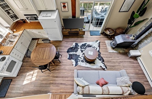 Our loft style chalet is ready for your getaway - large living area with a wood-burning fireplace to keep you cozy, king master bedroom upstairs, 2 bedrooms on the main level (both with queen bunk beds), fully stocked kitchen and dining area - perfect for gathering to share a meal or a fun family game night. Did we mention, we provide the games?