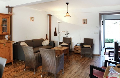 Central heating keeps you comfortable indoors. You can cook delicious meals for everyone in the open kitchen. Before going to bed, you can enjoy a movie in the living room. A children's bed and a high chair are present. 2 pets are allowed for an additional charge.
