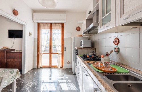 Farmhouse Appartamento Tramonto in Monteriggioni offers 80 sqm of space for up to 4 guests. You have 1 bedroom and 1 bathroom. The accommodation is located on the first floor of a farmhouse and includes an entrance, triple bedroom, large bathroom, small living area, and spacious terrace. A private well-equipped kitchen with dishes, cookware, and all necessary accessories is available. You can request a 4th additional bed or baby crib. Private amenities include air conditioning, fan, TV, WiFi suitable for video calls, baby bed, highchair, step-free interior access, balcony, uncovered terrace, covered terrace, and washer. Games and books for children are provided.